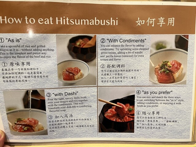 メニューも海外の方ように英語表記されていたり、英語と中国語表記された食べ方の案内。