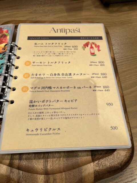 料理は河内鴨ネギトロ&北海道産いくら寿司 450円/1貫、銚子港あか身藁焼きタタキ ビーツ&チーズ 1,250円、活ムール貝白ワイン蒸し 990円、残ったスープを使ったブイヨンリゾット 700円、+スペシャルトッピング 北海道産いくら 680円、おおいた和牛 お贅沢ロッシーニ 3,200円、