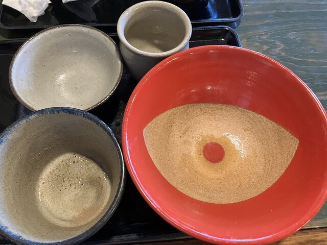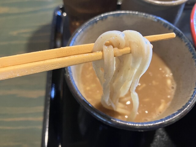 つけ麺の出汁は濃い味付けで、自分で濃さを調節できるように別のお茶碗に鰹だしがついていました。