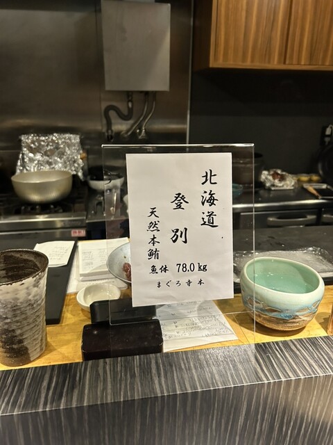 北新地駅から徒歩5分。ビルの地下に降りると、黒を基調としたシックな大人の空間が広がります。バーのような洗練された雰囲気で、おしゃれな「江戸前鮨」を楽しめるお店です