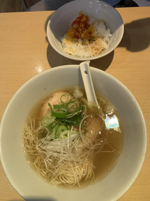 テーブル席に通され、朝のお品書きの米朝塩チャーシューと、塩ラーメン単品を注文。