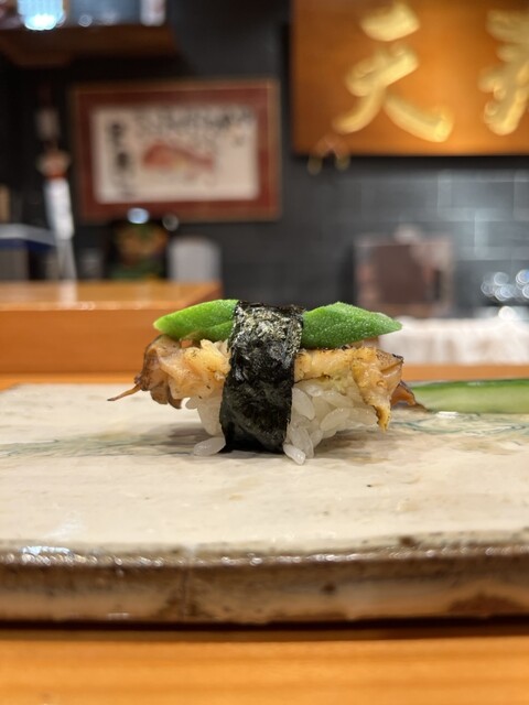 藍島のウニは、クリアな甘みと濃厚なコクを持ちつつ、後味がすっきりしていて印象的だった。カツオは藁焼きの香ばしさが際立ち、サザエは磯の香りが心地よく広がる。車海老の頭は香ばしく焼かれ、噛むほどに旨味が染み出す。後半には鯛や穴子も登場。特に穴子はふんわりとした食感とタレの甘みが絶妙で、ネギトロと海葡萄の組み合わせも楽しい食感だった。