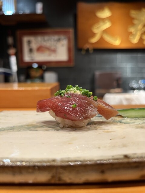 コースの幕開けは中トロと大トロ。程よく熟成されたマグロは、口の中でとろけるような食感と濃厚な旨味を持ち、最初から期待が高まる。続くアカイカはねっとりとした甘みが際立ち、車海老はぷりっと弾力のある食感とともに濃厚な旨味を楽しめた。サバはしっかり締められ、ホタテは甘みが豊かで、ヒラメは大葉が爽やかなアクセントになっていた。太刀魚には梅肉が添えられ、脂の甘みと酸味のバランスが絶妙。漬けマグロは味がしっかりと染み込み、キスは上品な白身の旨味が光る。