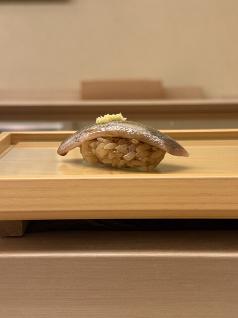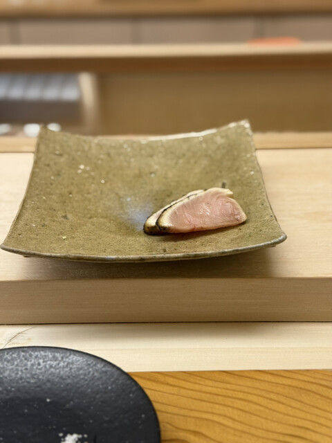 株の摺流しで一度落ち着いたあと、藁焼きのサワラの香りが立ち上がる。火の香りに負けないサワラの脂の強さで、素材の力がそのまま風味に反映されている。漬け込んだシャコはクセを抑えつつ旨味をきっちり残したバランスで、この段階でもう店の方向性がはっきりと見えてくる。