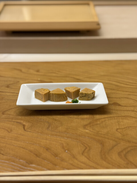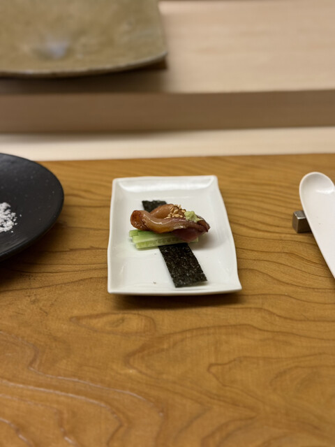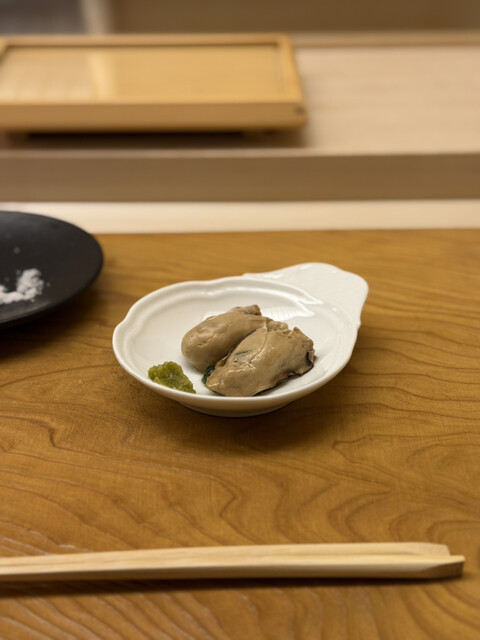 特に心に残ったのが、ボラとカラスミの一皿だ。仕入れの段階で卵を抱えていた個体で、身は刺身に、卵はそのままカラスミに仕上げて提供してくれる。いわば本当の親子が同じ皿の上で再会するような構成で、店でも10年で2回しか扱っていないというほど貴重なものだった。こうした特別な体験があると、その日の食事が一段と深い記憶として残る。