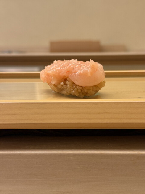 赤身・中トロ・大トロの流れも安定していて、どれも状態がかなり良かった。マグロはやま幸の塩釜産、120kgの巻網というしっかりした個体で、赤身は清さが際立ち、中トロは脂と酸のバランスがよく、大トロの砂ずりは重さよりも旨味で押してくるタイプ。素材そのものの力が素直に伝わる三段構成だった。