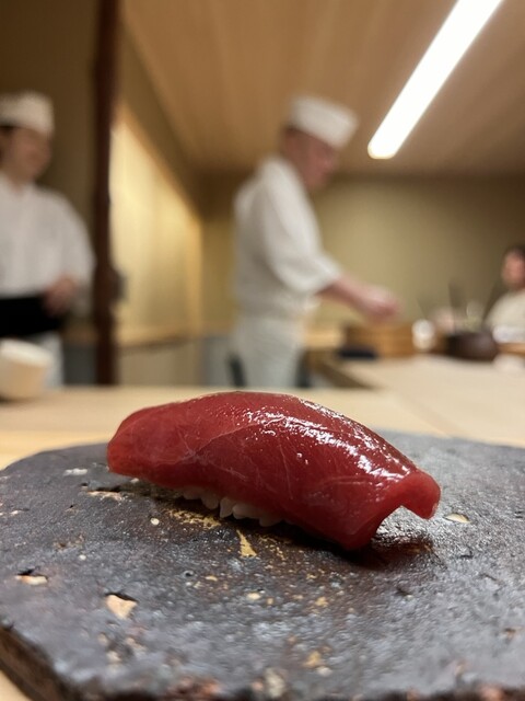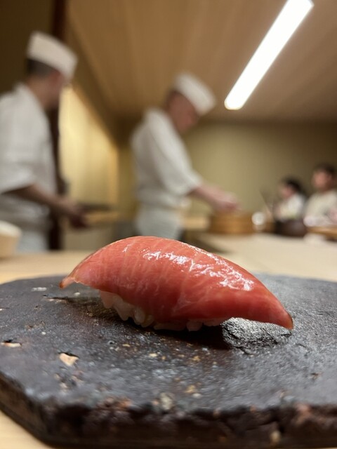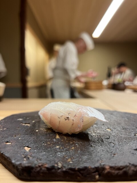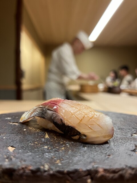 握りに入ると流れはさらに整う。スズキ、鯵、中トロと続き、そこで出てくる新子は3枚づけ。季節感だけでなく、仕事量そのものをきっちりと示してくるあたりに、さいとう系譜の矜持がにじむ。ハマグリの火入れは過不足なく、大トロで一度きれいな頂点を描く。ここまでは、教科書通りと言っていい。
