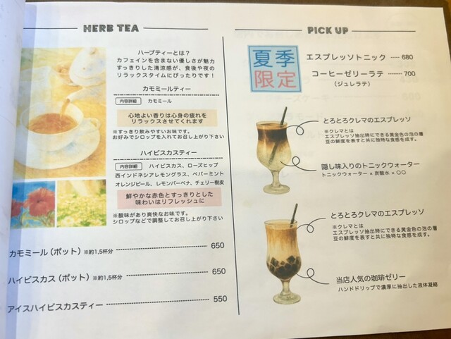 コーヒーは色んな種類があってメニューに詳しく書いてあり、お店の方にお任せもあります!!