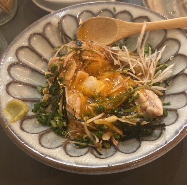 5種盛り、レバー、ユッケ、ねぎま、なんこつ、ずりに茶漬け、生ビール二杯に、変わり種の湯割り焼酎二杯で締めて5820円