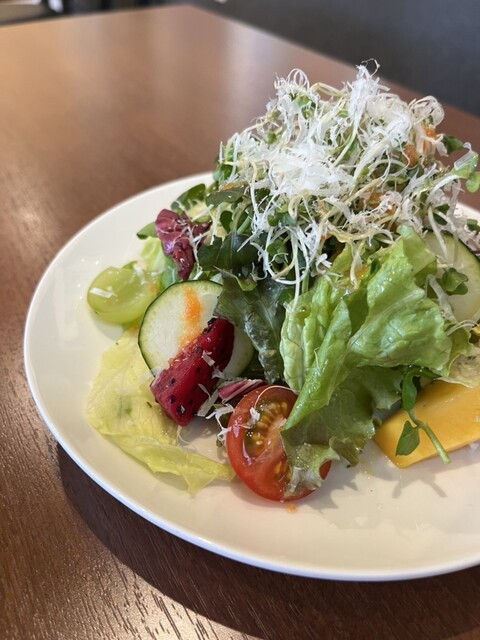 サラダも彩りの良い野菜やフルーツに優しい味付け。