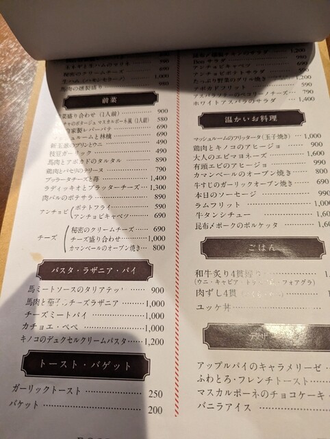メニューはグリル盛り3980円、BONサラダ690円、秘密のチーズケーキ、牛スジのガーリックオーブン焼き690円