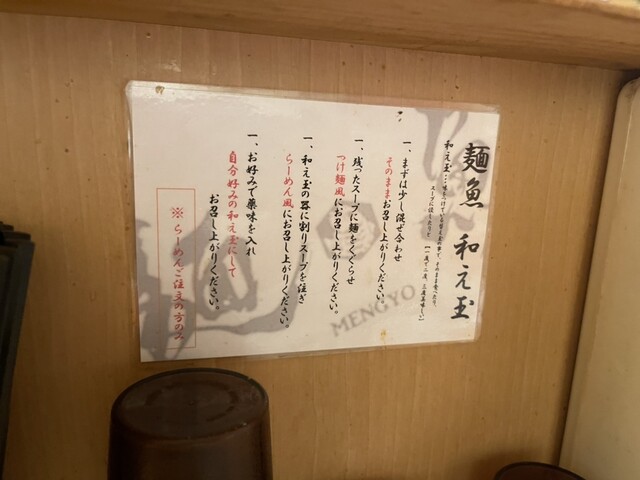 次に和え玉ですね。和え玉はタレや油は極力少なく代わりに鯛の身炙りのそぼろで味付けをしていました。そのまま啜れば鯛の炙りの風味を強くあじわえ、つけ麺風にしてスープにつけて頂けばスープとの調和を楽しめ、スープ割りを和え玉に入れてラーメン風にして頂けばそぼろがいい感じにあっさり鯛出汁割と混ざって程よいあっさり鯛ラーメンになりました。今回小で頂きましたが、大でも良かったなと思います。