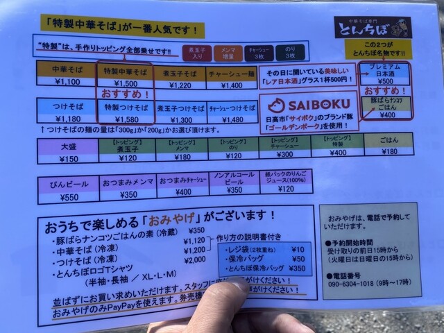 特製つけそば1580円と豚ばらナンコツごはん400円を注文