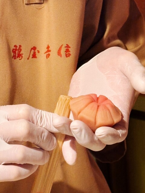 熟練の和菓子職人が目の前で生菓子を作る様子を見ながら、出来立てのお菓子と抹茶を楽しめます。