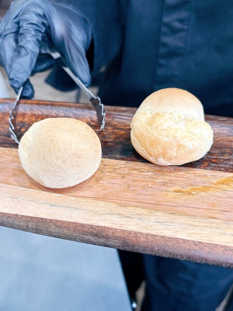チーズの風味とモチモチ食感が魅力のポンデケージョもお肉にめっちゃ合います!