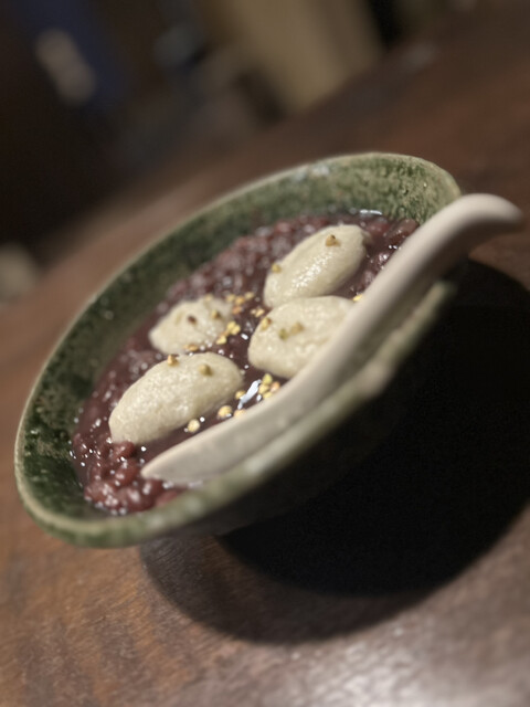 ぜんざいに入っているそばの実の食感と風味が良くとてもいいアクセントになっています。