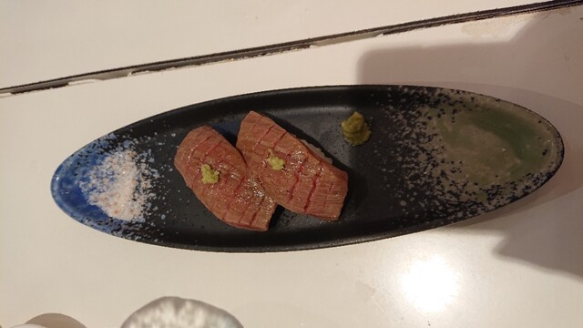 石垣牛の握りも塩とワサビで頂くのですが最高に美味しい。