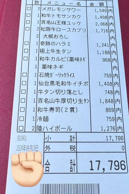 和牛といろんな部位があって気になるメニューを全部頼んでみました。