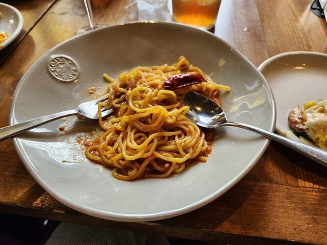 メインは、悪魔のスパゲッティ、カボチャと鳥のドリア頼みました。どちらも美味しい!