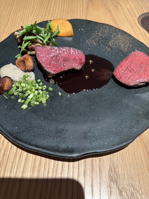 肉料理は蝦夷鹿。藁焼きで香り付けしてあって香りが良いです。魚も肉も文句なく美味い。