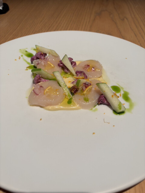ホタテの冷菜は彩りがいいね。目でも楽しめます。