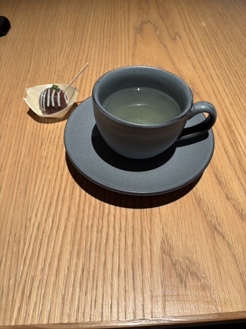 ハーブティーとたこ焼きっぽいもの一緒にきました。たこ焼きじゃなくてフォンダンショコラ。美味すぎちゃんです。