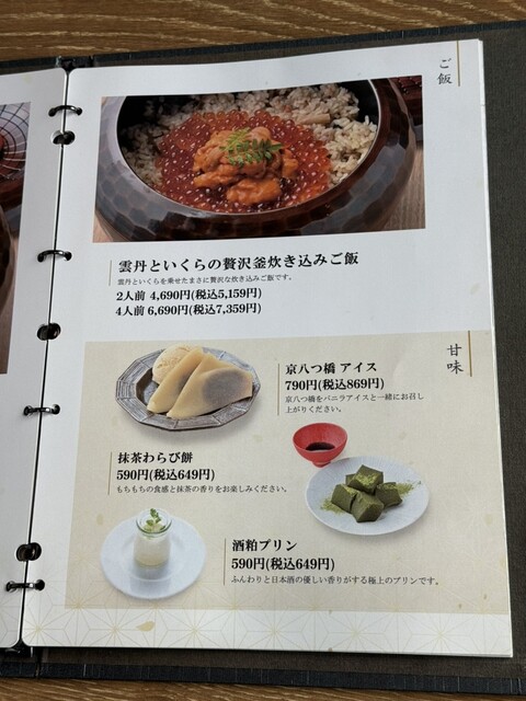 メニューは越後(新潟)名物に加えて、京料理も織り交ぜた構成。