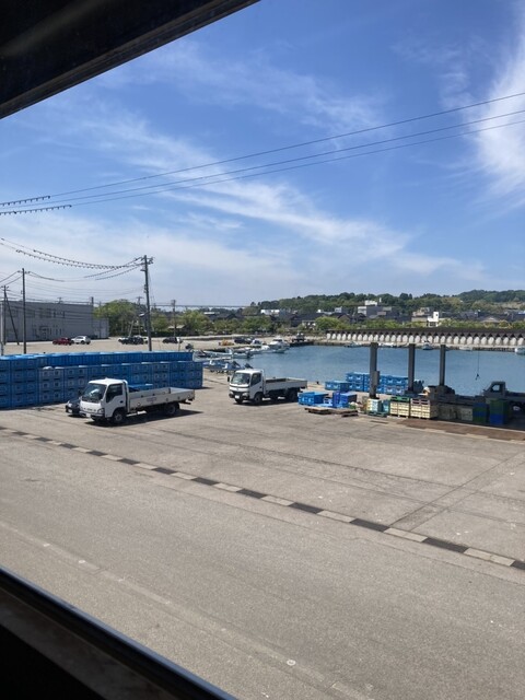 すると、『魚市場食堂、こちら』の看板が。こんな漁港のど真ん中にご飯やさんがあるとは。。。