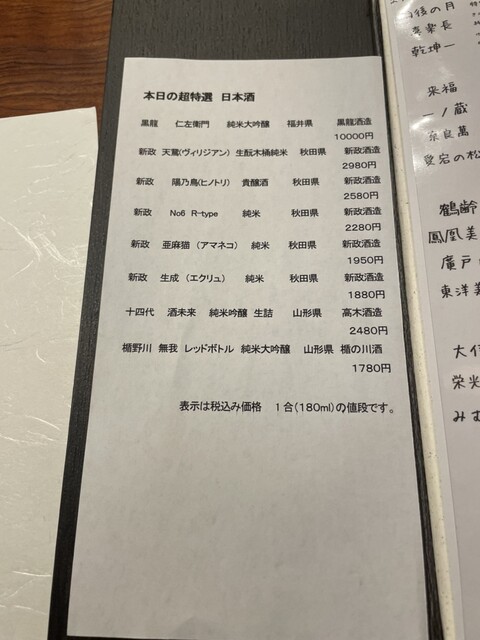 少し辛口のテイストに、軽やかで爽やかな喉越しのとても気持ちいいお酒でした。
