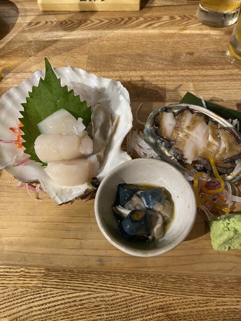 ウニ・アワビ・ホタテの刺身 → 新鮮プリプリで海の旨みがギュッと凝縮