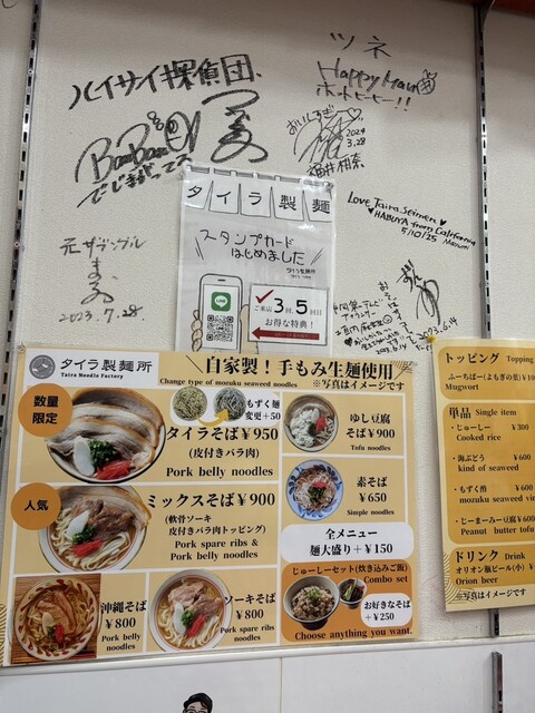 沖縄2日目、まだ,ソーキそば食べてないので、バーのお兄さんにソーキそば屋さんを聞くと、夜はやってないけど、どん亭(牛丼のお店)にソーキそばがあるらしいということで、ホテルに戻る途中のどん亭めざしてたら、たまたま、ソーキそば屋さん22:00に閉店。20分前に並んで、私の他2人前に並んでいました。お店の人が、22:00になったら閉店で入れないこともありますと言われましたが、絶対食べると決めて待ったら、閉店5分前に相席で入れました。