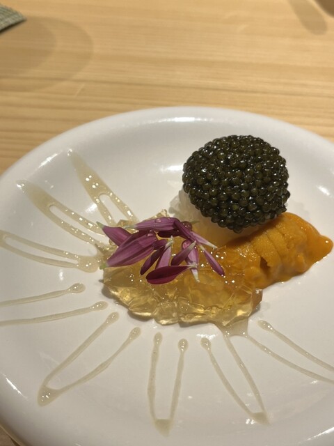・キャビア 馬糞ウニ 土佐酢ジュレ 岩手ハチミツ 金沢金箔