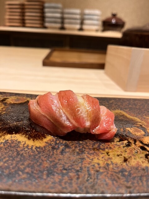 天然本鮪のトロ蛇腹 1週間熟成されていて旨味がすごい 口の中でとろけましす