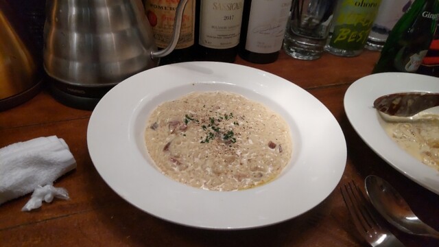 名物の生ウニのクリームパスタとポルチーニ茸のリゾットが絶品です