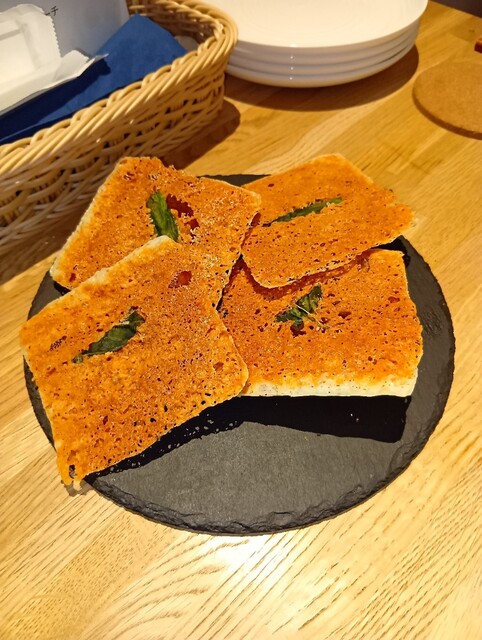 パリパリ食感の自家製チーズクラッカー 軽く食べ進めると焦がしたチーズのコクと旨味がじんわり広がる上質なスナック
