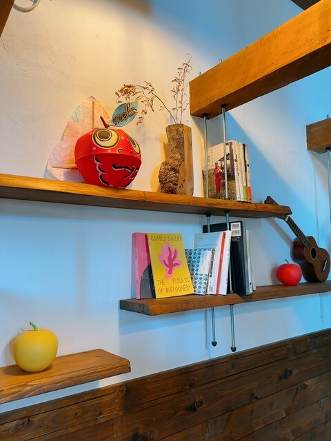 斜陽館を見学した後に寄りました。いたる所にりんごのディスプレイがあり素敵でした。りんごの絵本や画集、太宰治の「津軽」も置いてありました。
