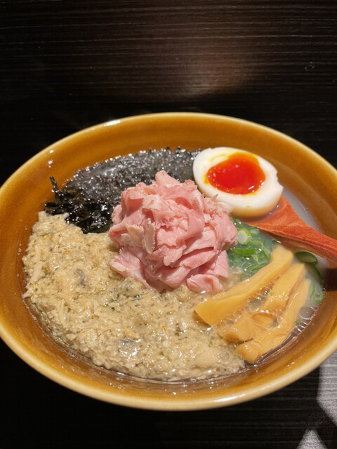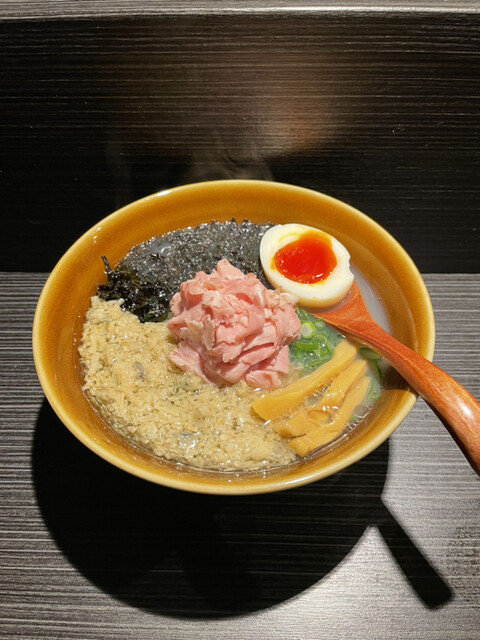店里只卖两个东西 特製牡蠣塩ラーメン和啤酒 这家拉面的汤头里牡蛎的那种海水的咸鲜味很棒 牡蛎和瑶柱金针菇的浇头非常鲜 紫菜还有酸笋也很搭