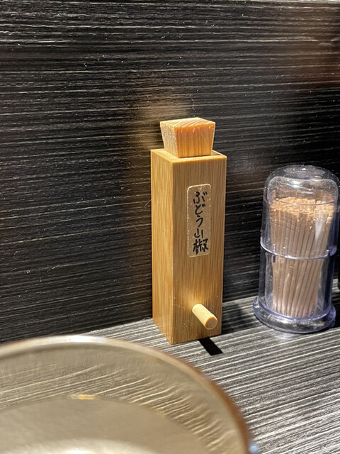 因为之前在家也经常吃用水头紫菜酱油水煮的牡蛎 还蛮怀念的[害羞R] 整碗面鲜到不行 桌上的调味料只有一个——ぶどう山椒 九层塔的香气很重 适合吃一半加 增加风味 这家店有魔力 刚吃完出门就想预约下一次了