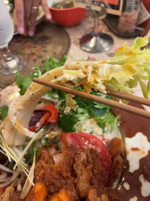 サラダはセロリやレタス、パプリカなど全てシャキシャキで美味しく、