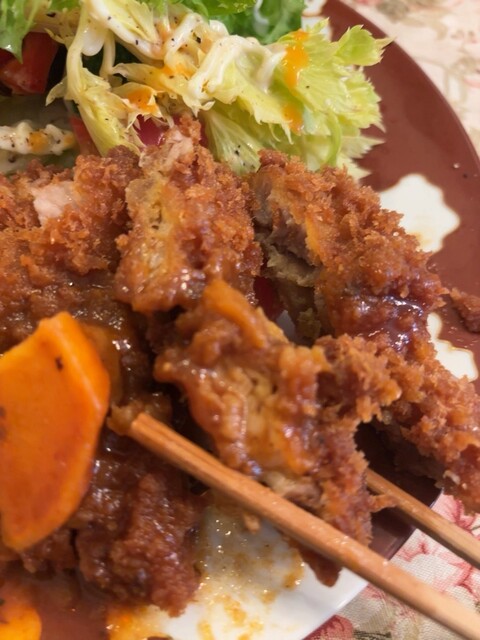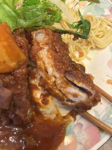 連れが牛タタキとチキンレモン頼んだのでとんかつデミグラスソースにしました。
