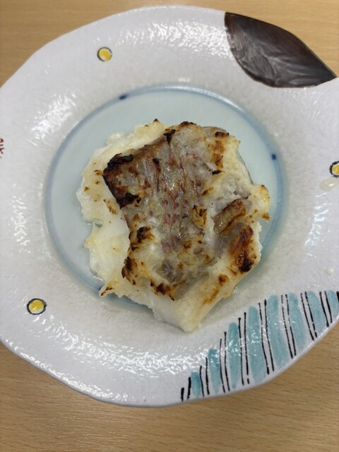 本日の一品が最初に提供されますが、こちらが焼き鯛にオニオンの風味があり美味い!