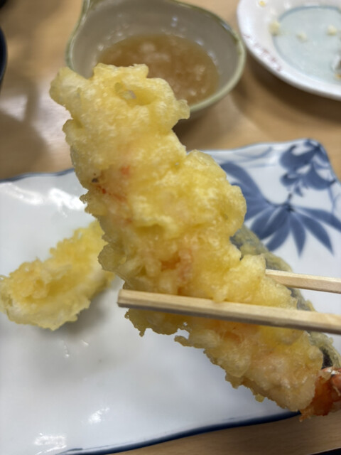 わかめもめっちゃ美味しい〜、天ぷらもエビが大きくプリプリ。