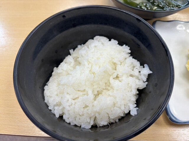 おまかせ定食はわかめ汁と刺身(ハマチorタイ)、天ぷら、本日の一品がついてきます。