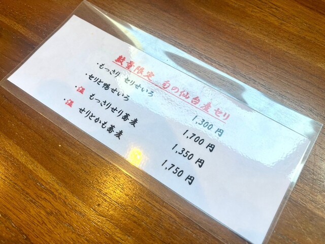◇セリと鴨せいろ 一七〇〇円