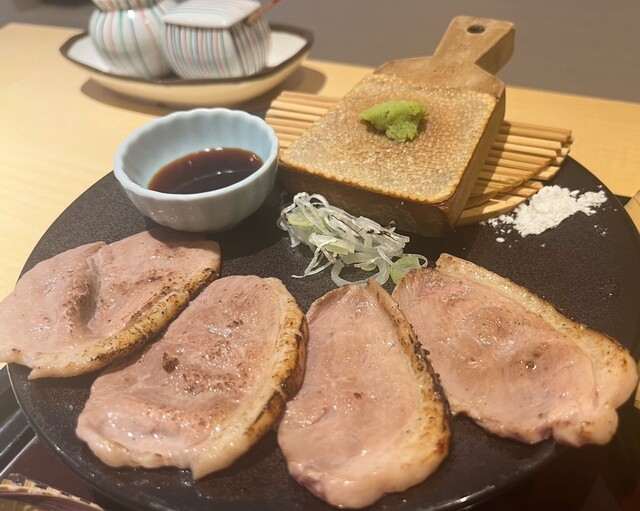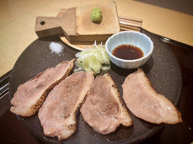 山葵と塩とタレが備えられ、食べる。
