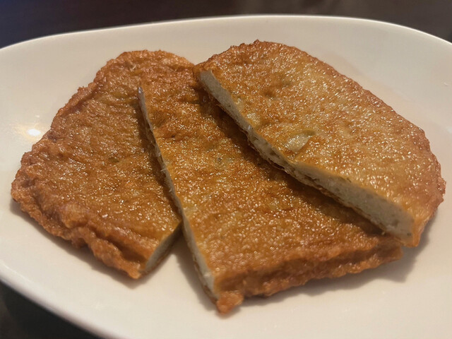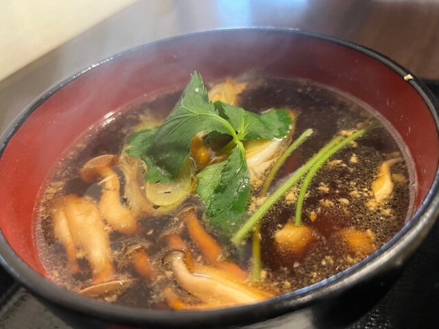 出汁は、鹿児島県の枕崎よりも東、指宿市の近くにある山川で加工された「かつお節」と高知県土佐清水の「宗田かつお」「さば節」、北海道産の根昆布で出汁をとっております。