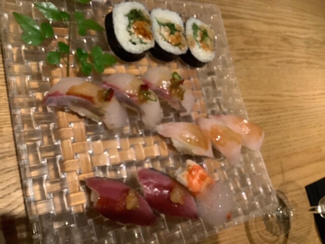 とにかくオシャレで、まずは目で見て楽しむ。お味が付いているので、お醤油無しで食べて下さいとのことで、お寿司なのに、お醤油無し?物足りないかも?なんて思っていましたが、とにかく何を食べても美味しい!!