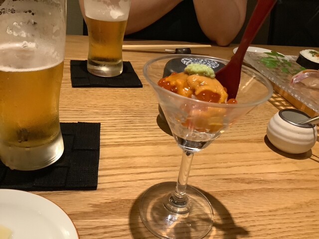 イクラとウニについては、弾けるようなイクラに濃いウニと、そして、カクテルグラスに入っているオシャレさに、お箸がすすみました。
