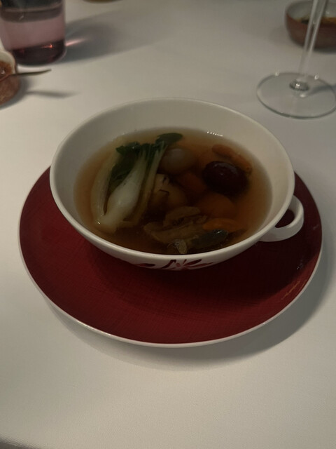 料理は春巻き、蟹玉、エビのガーリックソテー、薬膳スープ、蒸し魚、蒸しカブ、煮込スペアリブ、チャーハン、デザートなど満載で、料理もイメージしている中華よりは洋風な盛り付けで、特にエビのガーリックソテーと煮込スペアリブは絶品でした!