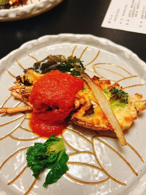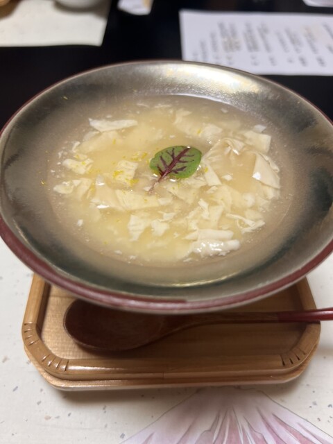 海老芋の唐揚げ、角湯葉の天ぷら、菊菜 蟹